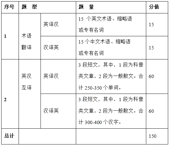 本科目的考试内容涵盖词语翻译和英汉互译两个部分。满分150分。