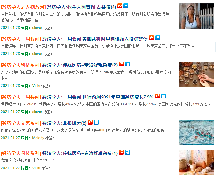 2.可可英语、经济学人双语版、外刊、英译中国现代散文选